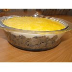 Потом выкладываем все продукты в форму слоями: капуста - грибы - капуста,