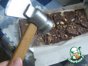 Шоколад порубить (я делала это довольно жестоким способом))) и добавить в смесь.
