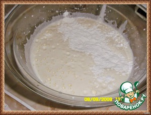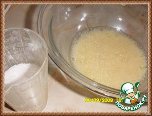Яйца взбить немного с солью, постепенно всыпая сахар. -