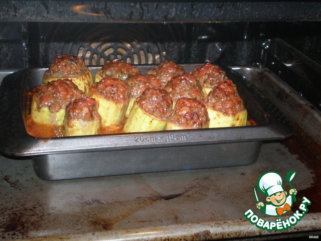 "бочонки" нафаршировать фаршем, выложить в форму для запекания