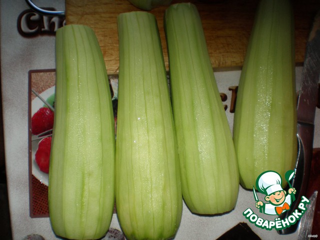 Нарезать каждый поперек на 3 кусочка, вырезать сердцевину
