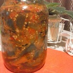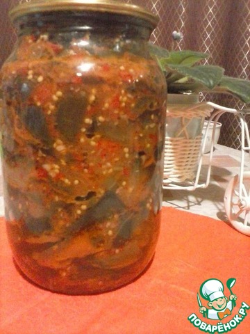 P.S. Для тех, кто путается в количестве соли: нарезанные баклажаны посыпаете солью на глазок, просто присаливаете средне (как капусту). Эта соль никак не учитывается. Потом их отвариваете. Как по мне, если круто не солить - их можно не промывать от соли перед варкой, а так забросить в кастрюлю. А вот когда варите рассол из перемолотого перца, масла и уксуса - кладете соль в количестве, указанном в рецепте (2 ст.л).
