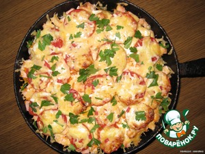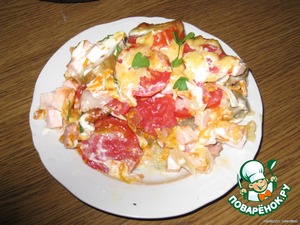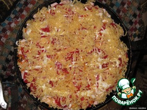 Опять повторяем все слой, сверху засыпаем сыром и ставим в духовку на 30 минут при температуре 180-200 градусов. Получаем результат.