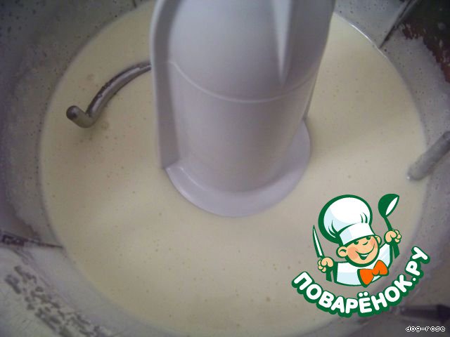 Смешиваем муку и разрыхлитель, понемногу добавляем в смесь, перемешиваем каждый раз до однородности
