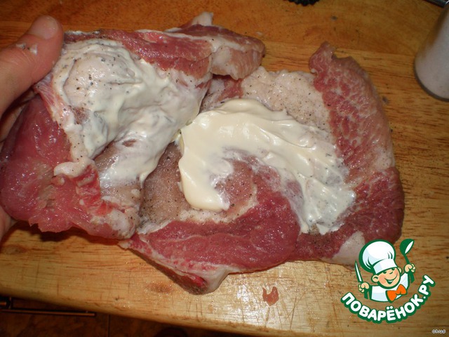 Свиные кусочки надрезать вдоль - сделать кармашки