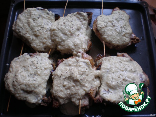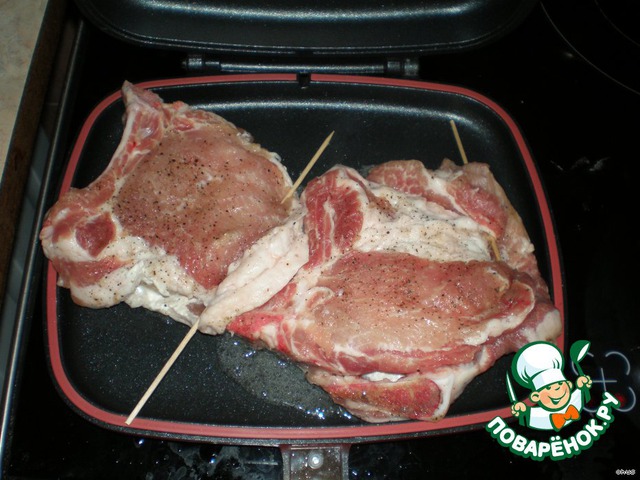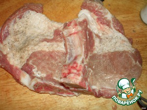 - Корейка (свиная, порционные куски шириной около 2 см, у меня с косточкой (около 2 кг получилось)) — 6 шт