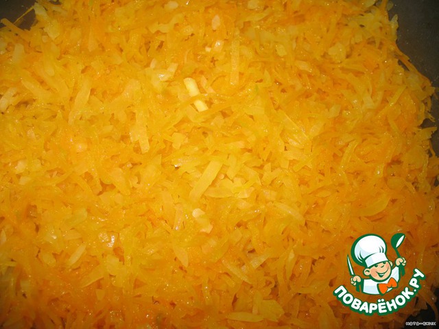 Редьку натереть на терке, немного отжать. Лук и морковь натереть и обжарить до готовности.