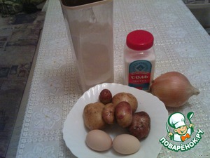 Чистим картофель и отвариваем ЦЕЛИКОМ,чтобы не разварился в кашу.Затем расталкиваем его,добавляем два яичка,солим, перчим, добавляем муку.