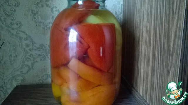 На зиму болгарский перчик я замораживаю (для того, чтобы фаршировать), но перца много морозильная камера битком, тогда я закатываю его в банки. Рецепт простой, но может кому и сгодится.