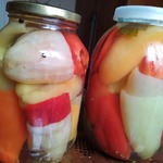 И ещё один момент - когда Вы заливаете в банки кипяток или рассол уже, то надо смотреть, чтобы жидкость просочилась везде и в перцы прошла так же. А то может у Вас в банках воздух остаётся? И при заливании в банки рассола перед закатыванием надо рассол наливать так, чтобы он начинал стекать по стенкам банок!