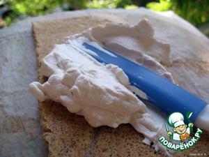 Противень застелить бумагой для выпечки, выложить массу и разровнять. Старайтесь придать форму прямоугольника, чтоб углы не скруглялись.