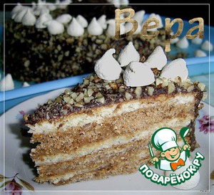 Весь торт покрыть глазурью. Обсыпать измельченными орехами.
