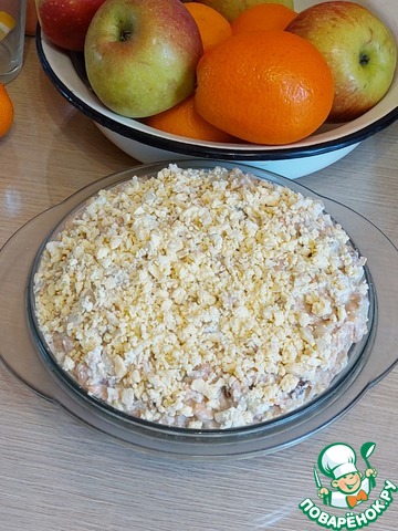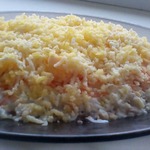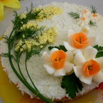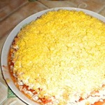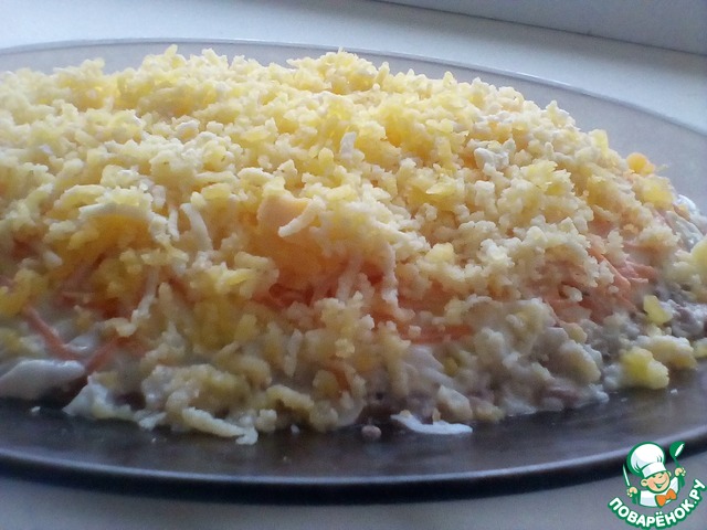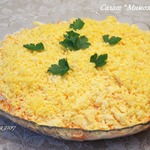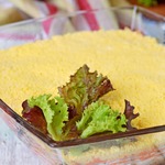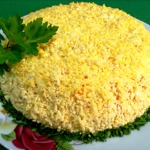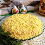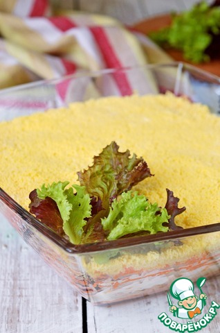 9. Натертые на терку или размятые вилкой желтки красиво уложить сверху.