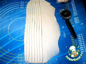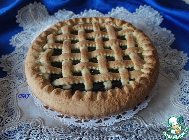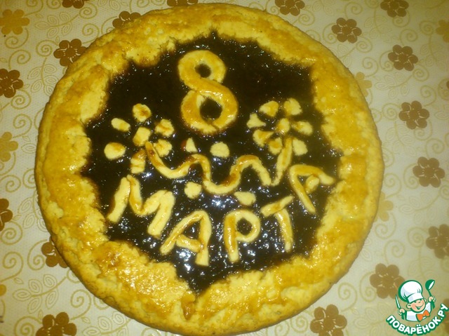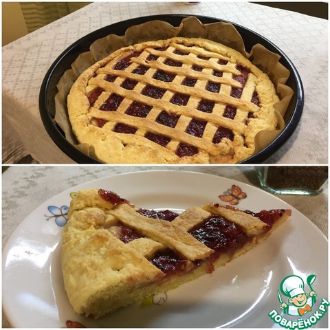 • Варенье выложить на тесто, а сверху положить полоски так, чтобы получилась «решетка».