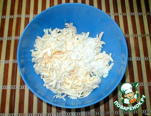 • Творог протереть через сито и растереть с размягченным маргарином.