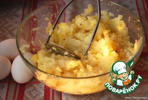добавить 50 г сыра, муку и яйца, вымесить тесто без комков.