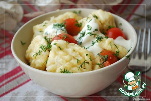 Можно подать с помидорами-черри, сметаной и зеленью.