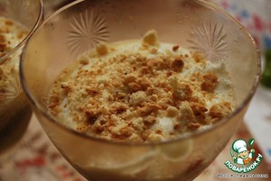 На дно бокала выложить крыжовник, затем творожный крем. Печенье натереть на терке и посыпать десерт. Охлаждать полчаса.