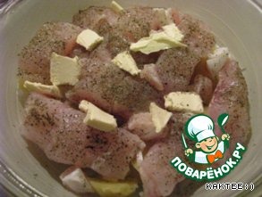 Пару кусочков масла сверху, чтоб сочнее была:)