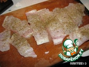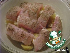 Рыбу моем, режем кусочками. Солим, перчим, добавляем приправу к рыбе и сбрызгиваем соком лимона.
