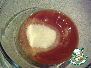 Добавить чайную ложку (без горки) соды. Взбить венчиком (происходит эффект гашения соды, т. к. в томате есть кислота)