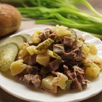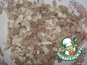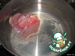 Мясо отварить до готовности, посолить по вкусу. Охладить в бульоне, чтобы было более сочное.