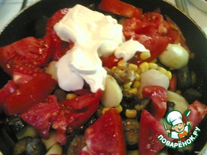 Отправляем сковороду на огонь и тушим под крышкой. -