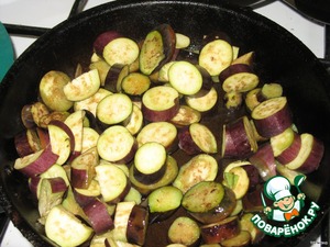 Баклажаны у меня, как вы помните, в этом году стройные, поэтому режем колечками, обжариваем на растительном масле и отправляем к печени и картофелю.