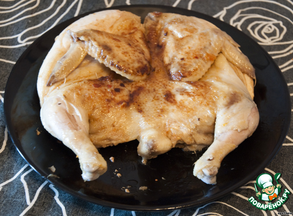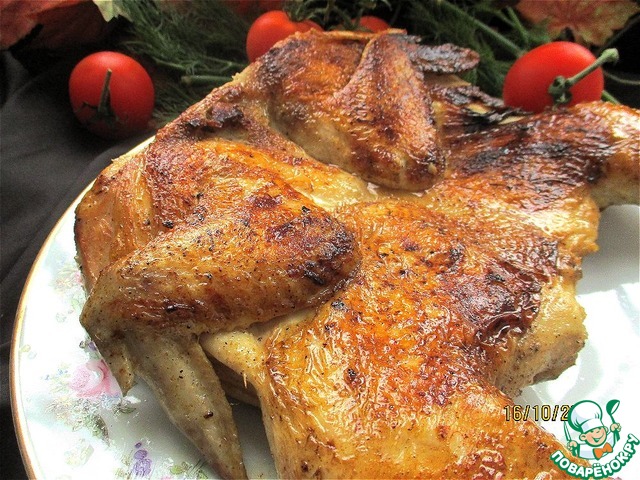 Я знаю, что сейчас многие начнут говорить, что в названии ошибка. Но нет, цитирую Википедию - Цыплeнок тапака, ( от заимствованного из арабского ) — блюдо грузинской кухни. Представляет собой цыплeнка, приготовленного в местной разновидности сковороды с крышкой «тапака», происходящей с того же арабского слова (груз. tapha «сковорода»). При приготовлении в такой сковороде тушка перед жаркой сплющивалась. В России такой способ приготовления получил название «Цыплeнок табака». По поиску не нашла ни одного рецепта, к моему удивлению. Приглашаю.