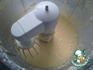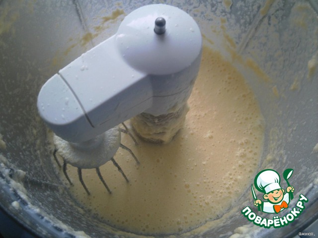 • Взбить маргарин с сахаром, продолжая взбивать, добавить яйца, кефир.