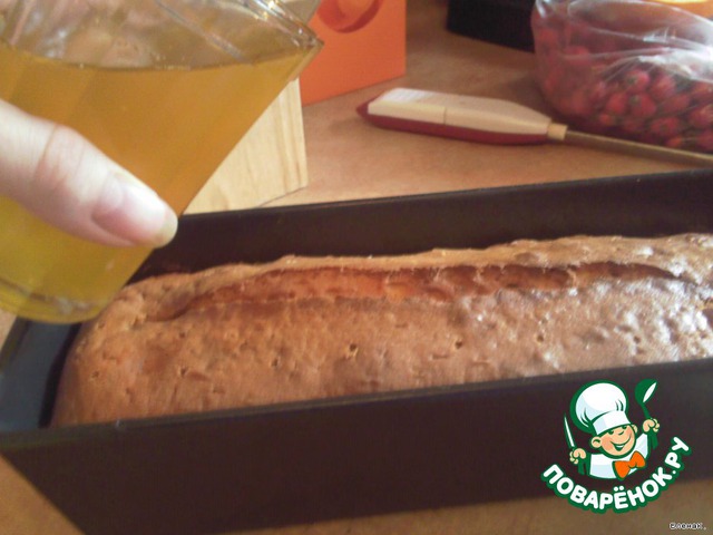 • Готовому кексу дать минут 10 остыть в форме, потом попротыкать его палочкой и залить сиропом.
