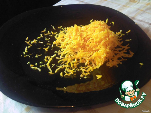 Цедру одного апельсина натереть.