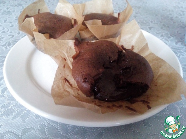 Кексы получаются очень-очень вкусные, нежные и шоколадные. Внутри кекса ШОКОЛАД ОСТАЕТСЯ ЖИДКИМ! Готовить их легко, попробуйте, они этого стоят!