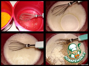 добавить сахар, продолжая взбивать до полного растворения сахара (я все делала веничком, можно и миксером).