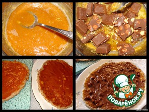 Получилась светло-коричневая карамель, которую надо быстренько-быстренько намазать на коржи.