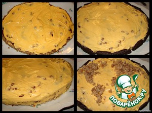 Кремом смазываем коржи, складываем их друг на друга, обмазываем боковинки. отправляем в холодильник для застывания крема.
