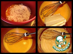 на водяной бане взбиваем 8 желтков с сахарной пудрой. Продолжая взбивать, добавляем лимонный сок и мешаем дальше, пока масса не станет более вязкой. У меня ушло минут 15. Надо вовремя снять массу с "бани", иначе получим омлет :)