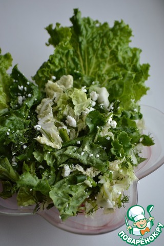 - Листья салата / Салат (зеленый листовой, добавляет нежности) — 1 пуч.