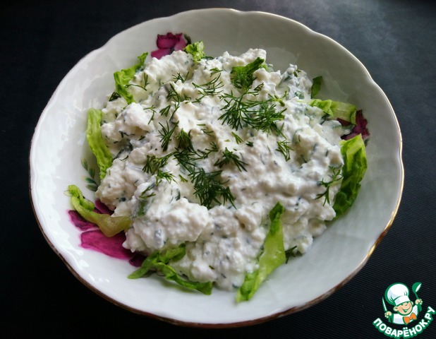 Добавить баночку зернистого творога. Добавлять надо вместе с жидкостью. Попробуйте на вкус и, если надо, присолите. Если вам попался творог суховатый, жидкости не хватает, можно добавить немного майонеза. Я добавляла как-то оливковое масло.