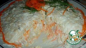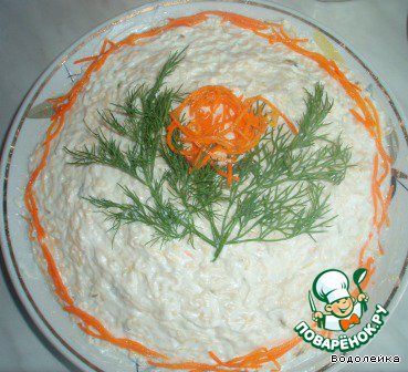 Итак, сложного здесь ничего нет. Продукты выкладываются слоями и смазываются майонезом.