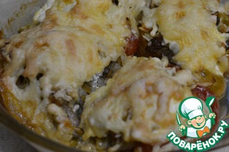 Картофель уложить в смазанную растительный маслом форму и посыпать тертым сыром. Запекать 5-7 минут при температуре 180 градусов.