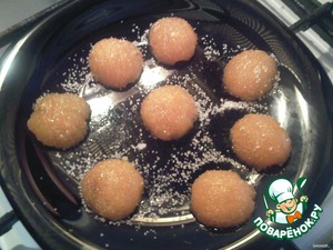 Сливы делим пополам, косточку вынимаем, шкурку снимаем. Половинки слив нарезаем тонко веером, не доходя до основания, посыпаем сахаром и корицей и даем постоять 10-15 минут. Сливаем сок, который пустила слива. Я корицей не посыпала, муж ее почему-то терпеть не может. И сливы нужно брать покрупнее, у меня мелковаты, и потверже, а то разрезы плохо видны.
