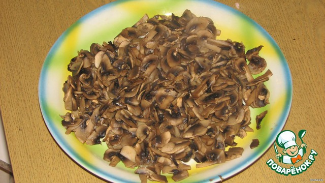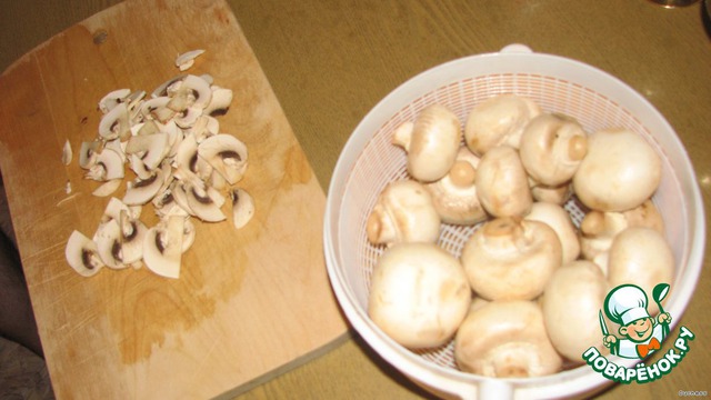 - Шампиньоны (никогда не пробовали ничего кроме шампиньонов, но думаю, что с белыми тоже будет вкусно (сырые)) — 450 г