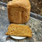 Все ингредиенты складываем в хлебопечку в нужном порядке. Перец, порезанный кусочками, последний. Выставляем режим "Основной" (3 часа 40 минут), корочка - средняя или тёмная. По окончании выпечки получается вот такой красавец! -