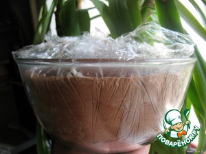 Чашку застелить пищевой пленкой.