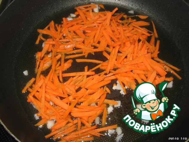 Добавляем морковь, нарезанную соломкой.