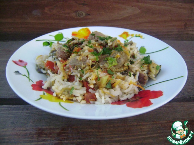 Рис с овощами и желудочками