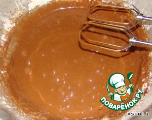 [ Размягченное масло взбиваем постепенно добавляем в него карамель Продолжая взбивать.