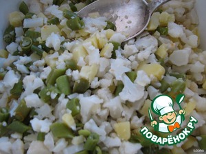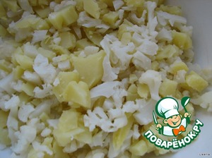 Итак, отварные картошечку и цветную капусту мелко режем. -