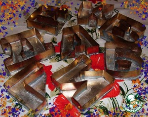 Достаем из чулана бабушкин инструмент для выпекания вот таких треугольных печенюшек и выпекаем печенье из темного и белого теста. На них легко определяются на ощупь силуэты забавных фигурок.